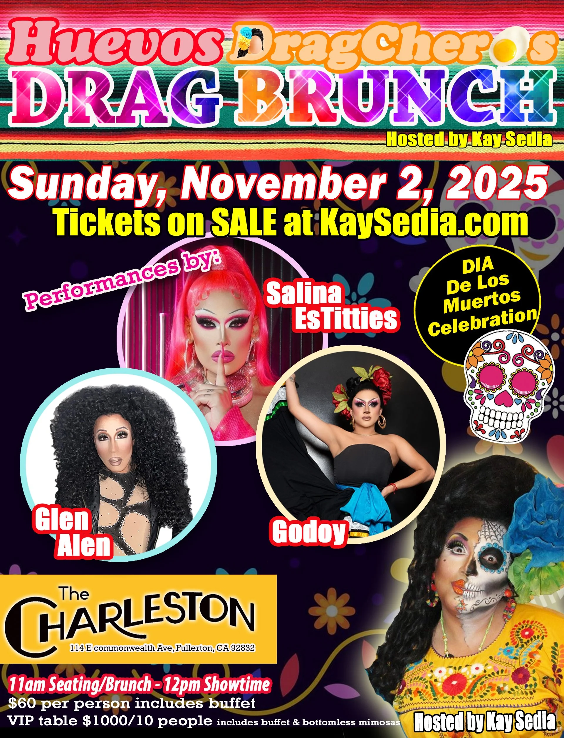Huevos DragCheros Drag Brunch returns on Sunday, Nov 2, 2025 at The Charleston in Fullerton, CA with a DIA De Los Muertos celebration!